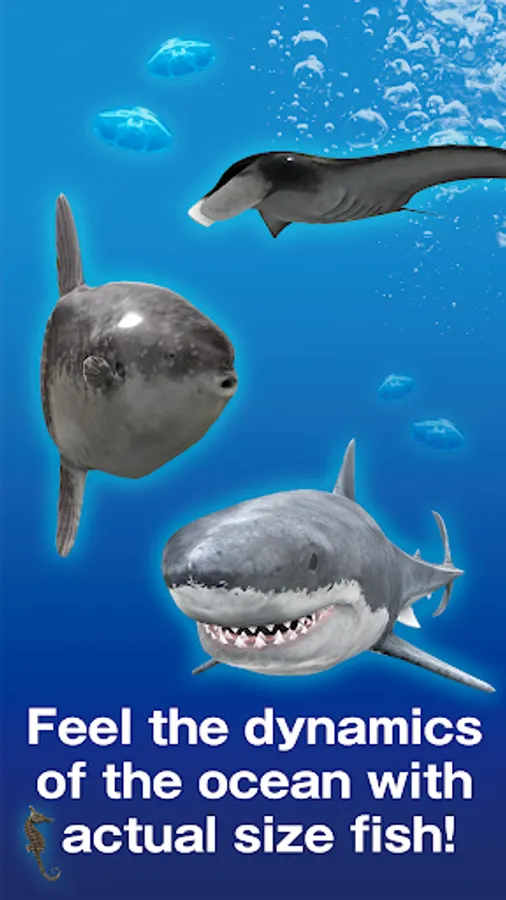 Experts from Gakken, the major publisher of educational books in Japan, supervised the 3DCG to mimic the motion and the texture of the sea creatures.