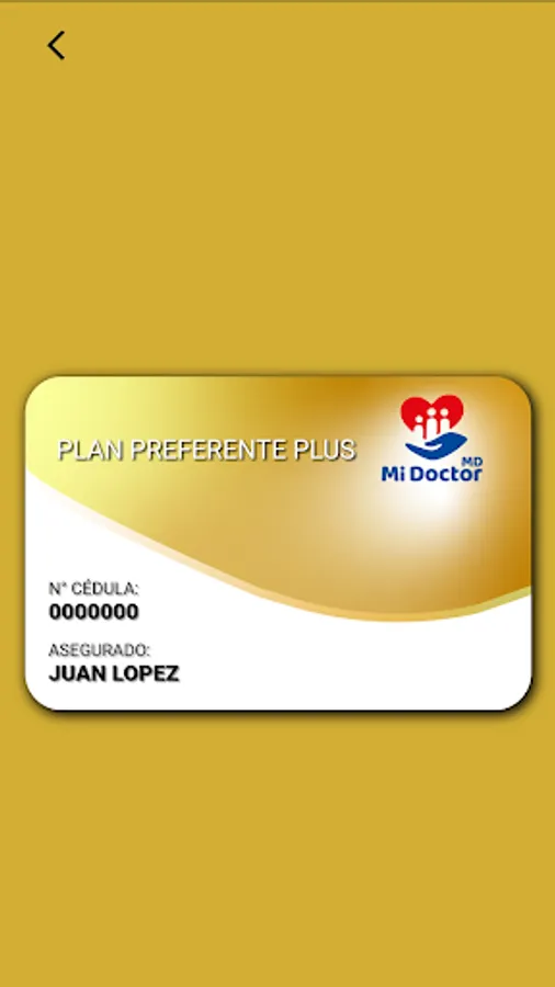 Virtual card for the provision of the service. The data is displayed according to your identity document and your data and the status within the service are displayed.