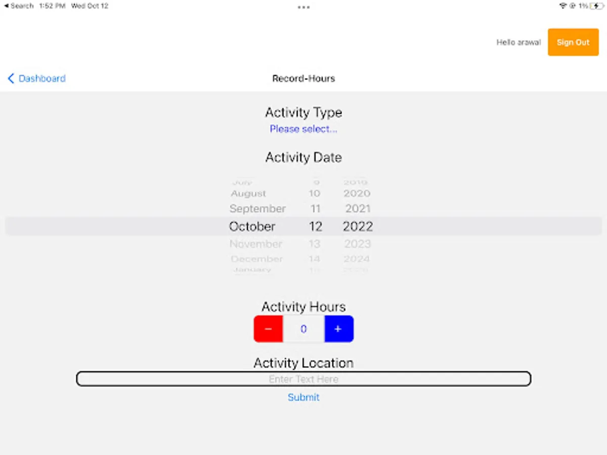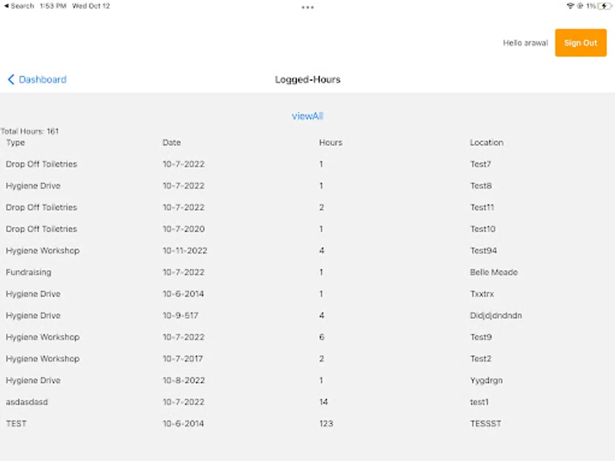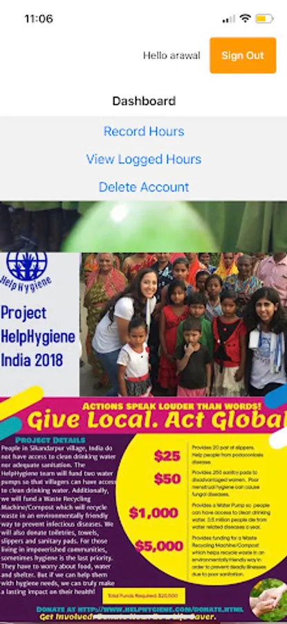 This app is for the Help Hygiene non-profit organization which is dedicated to increasing sanitation in impoverished communities. Volunteers within the organization can log their volunteering hours as they fundraise, host drives, and more. The volunteering data is then sent to the founders of Help Hygiene who can easily manage the data and give appropriate credit. This app was created by Arjun Rawal.