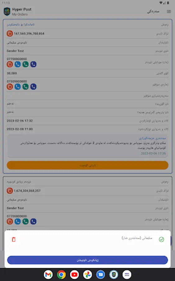 ٥- لە دوای وەرگرتنی پۆستەکەت دەتوانیت هەڵسەنگاندن(فیدباک) بۆ شۆفێر و نێردەر بکەیت، بۆ ئەوەی بەڕێزت سوودمەند بیت لە خزماتگوزاری باشتر لە داهاتوودا.