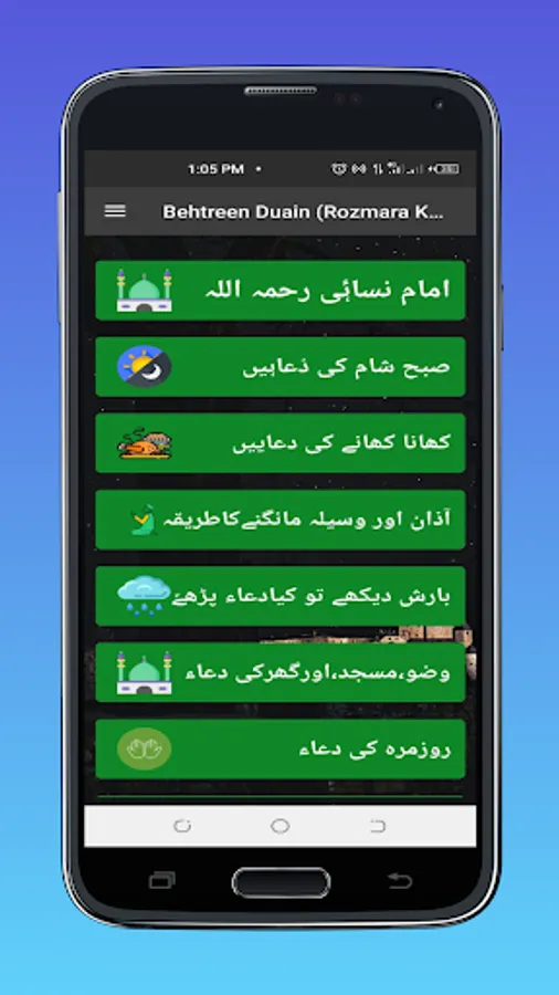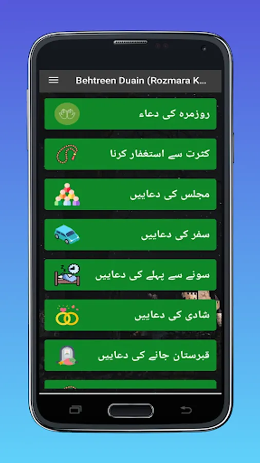 Rozmara Ki Duain ye app bohat hi khosurat duaio ki app is ma muktalf duain hy is app ma daily bases ki duain shamil hy is app ko apny dosto ky sth share karin shokarya