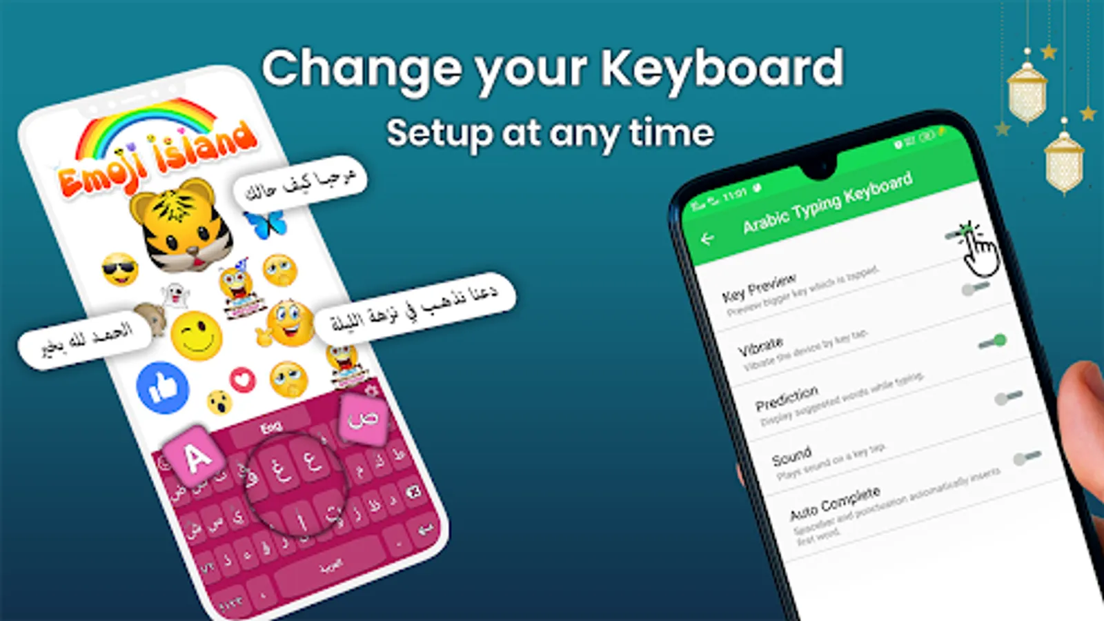 Arabic keyboard with English allows you to write in Arabic and English language with Arabic Harakat Keyboard. You can easily compose emails, and posts for social media through the Arabic Keyboard with emojis. With an Arabic keyboard, you can write all Arabic Alphabet, letters, and words. It is the easiest Arabic keyboard to type in Arabic as well as the English language.