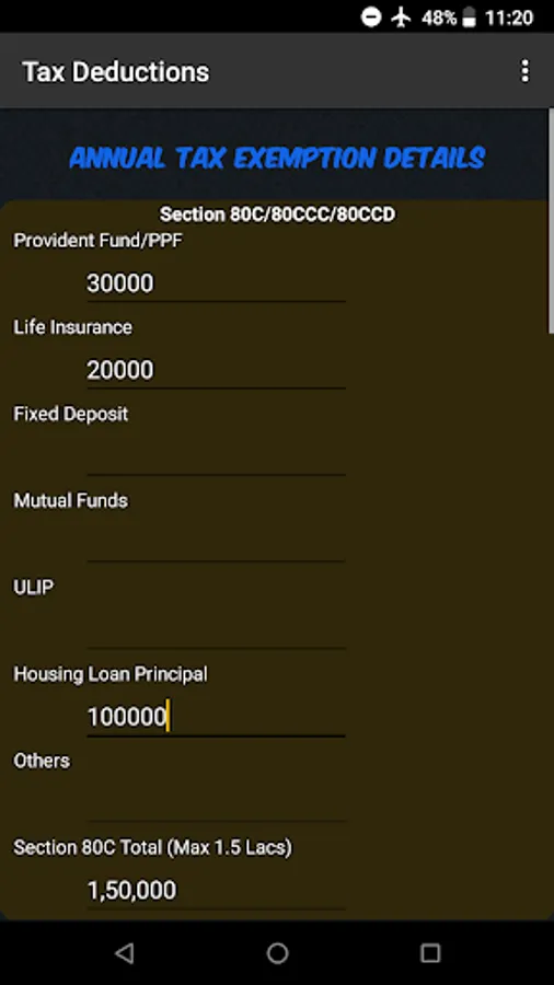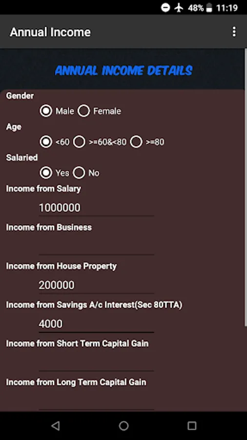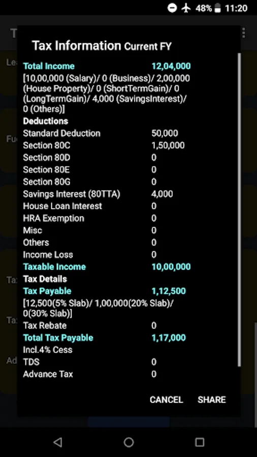 Calculate the Income Tax for the Financial Year 2019-2020 (Assessment Year: 2020-2021) using this application. Advance Tax Calc, Quick Tax Calc and HRA Exemption Calc were provided in the application.