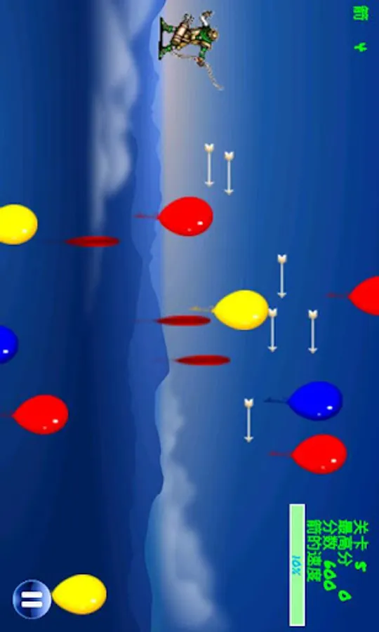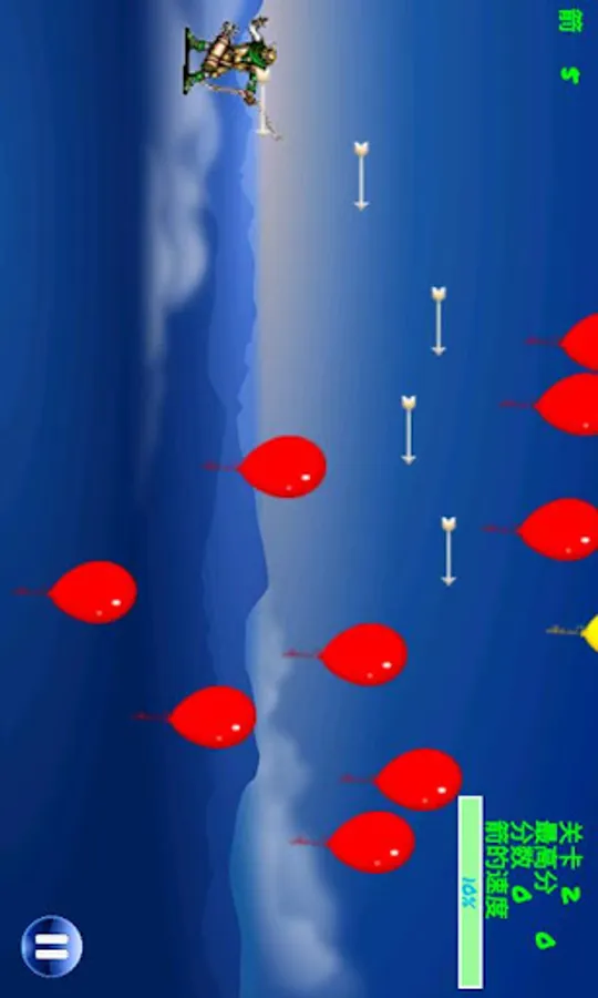 •点击屏幕,垂直或水平运动改变箭头速度。放箭时便是选定的速度。