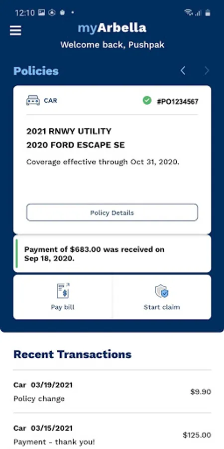 View your policies, claims, and billing history from the dashboard screen on the myArbella app! Everything you need to know about your policies, 24 hours a day!