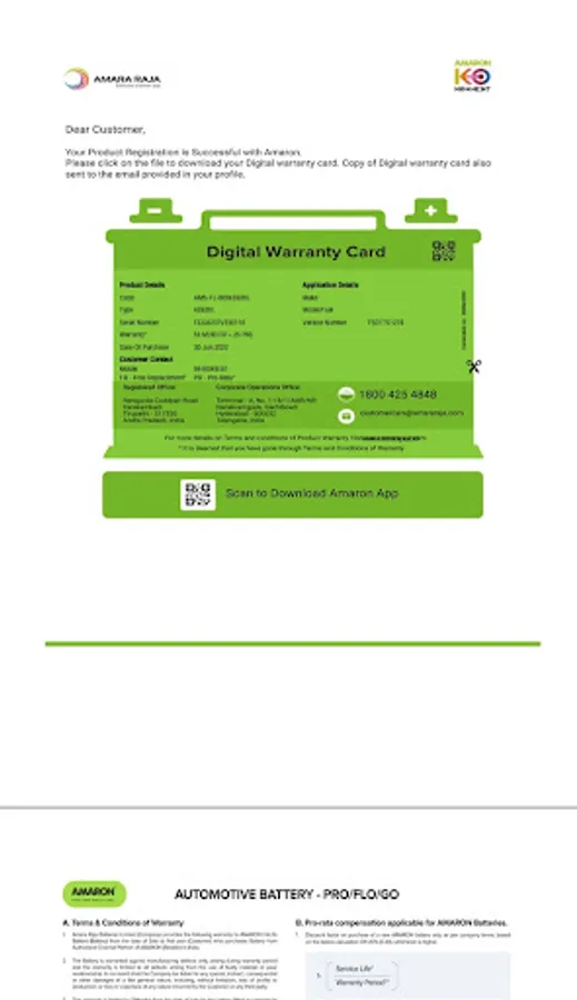 Go paperless with the new AMARON KONNECT APP! Protect your battery/h-ups by generating a digital warranty card along with a host of other valuable benefits.