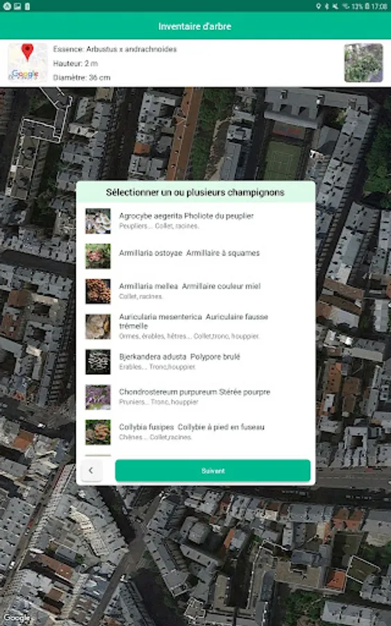• Precisely place the location of your tree with the satellite map.