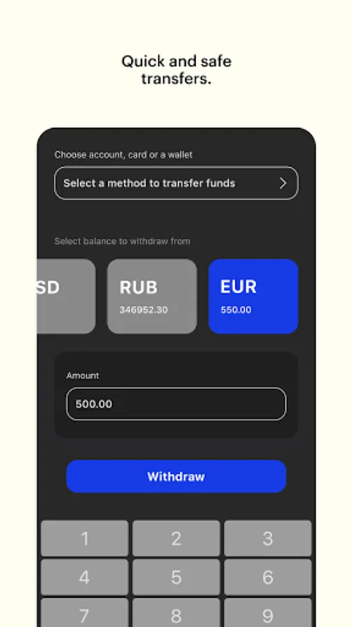 ● Commission free payments in EUR, USD or local currency to a bank card or bank account