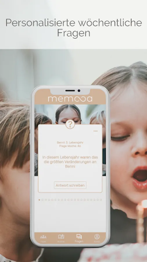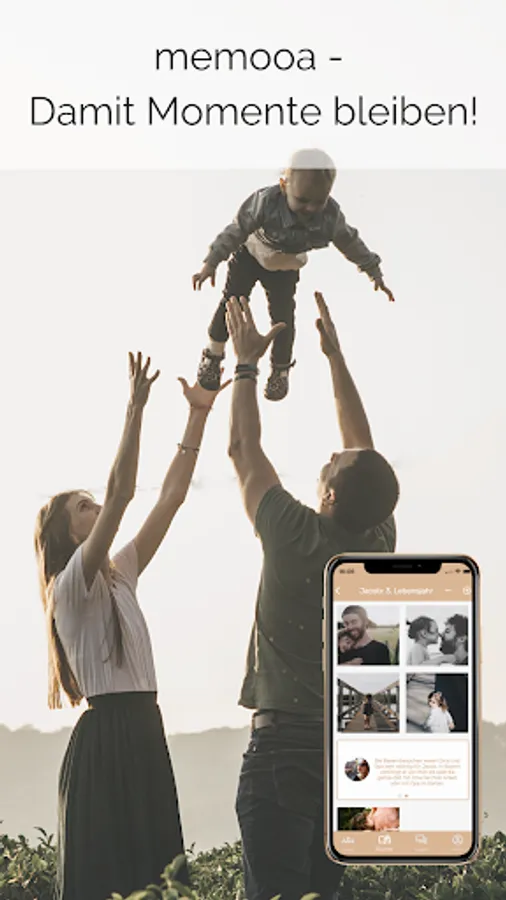 We are fully committed to your privacy. We are a young German start-up and will store your data encrypted on European servers. When you share your valuable memories and photos in our memooa feed with family and friends, you will of course still hold the rights to your data.