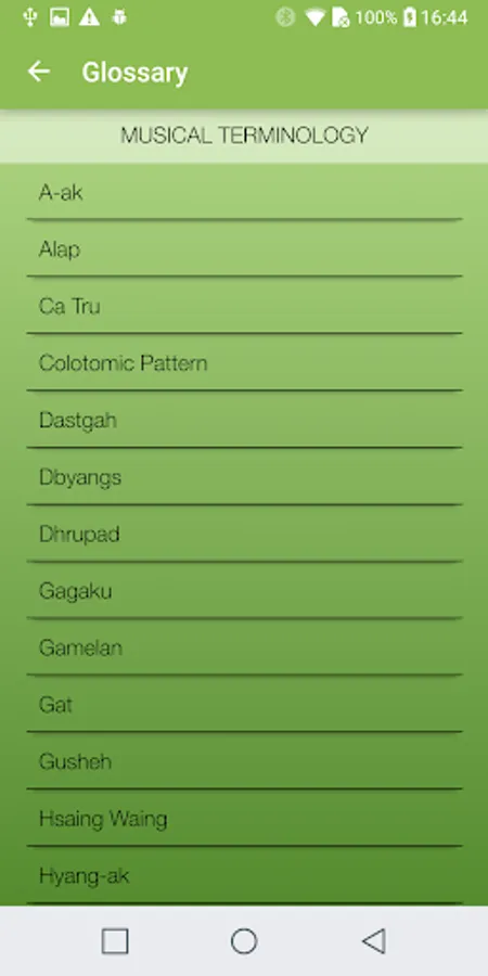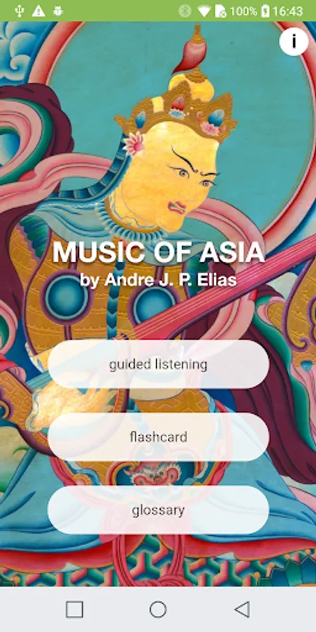 The Music of Asia app is a supplemental app with guided listening examples, testing materials, and a glossary that will help students better understand the styles, instruments, and diversity of the music of Asia. Divided into weeks which cover twelve different geographic and cultural areas, each week's listening seeks to promote discussion about music and cultural ideas. As a listening and study aid, this app will be of use to teachers and students as an survey style introduction to the music of Asia.