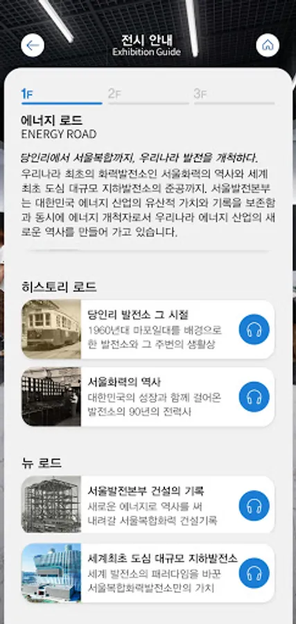 From the Seoul Thermal Power Plant, which is Korea's first thermal power plant and the first birthplace of the Korean energy industry, to the success of a large-scale underground power plant in the city that was the world's first challenge. It preserves the history of the Seoul Power Plant, which has been the energy of Seoul for a long time. In addition, it presents a vision for the future energy industry and conveys information on the importance and safety of electric energy to citizens.