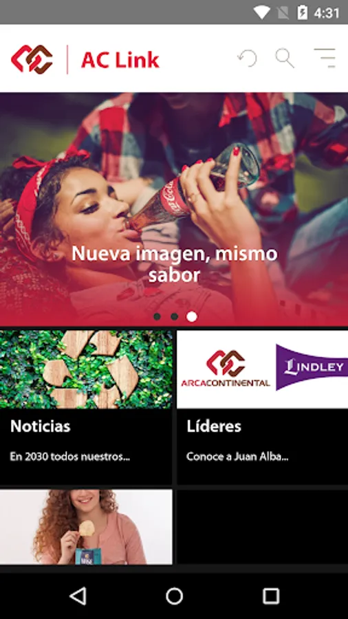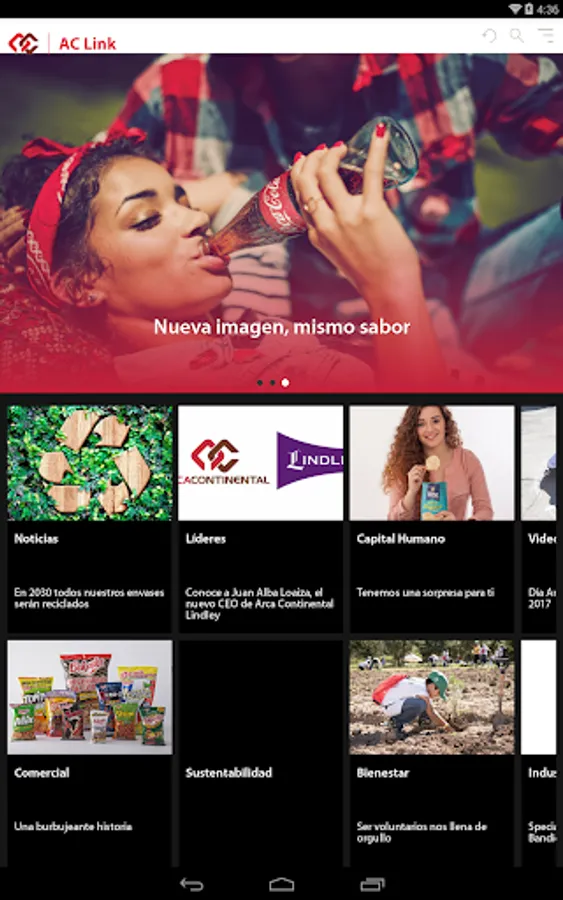 App internal communication Arca Continental. AC Link features news, events, videos and relevant updates for employees of the company.