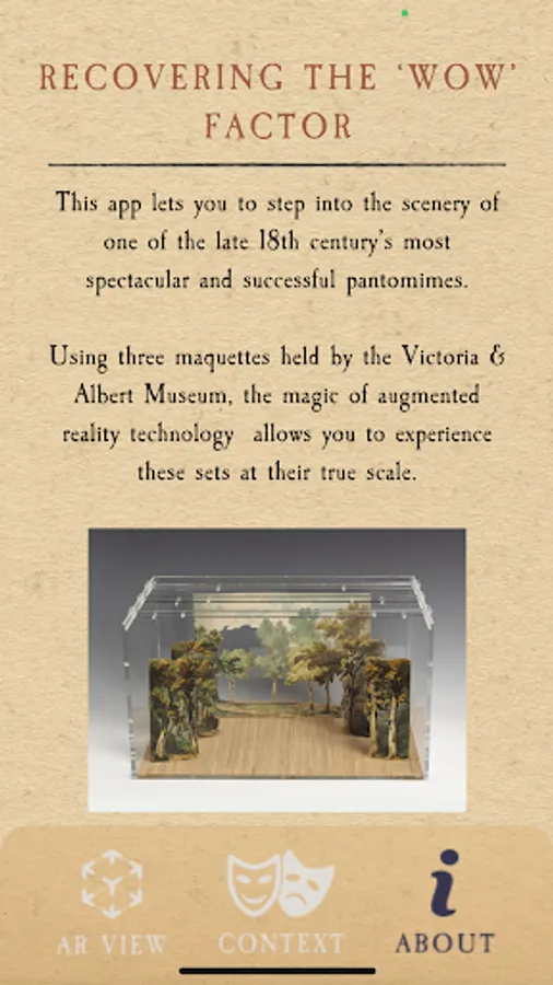 Using three maquettes held by the Victoria & Albert Museum, the magic of augmented reality technology allows you to experience these sets at their true scale.