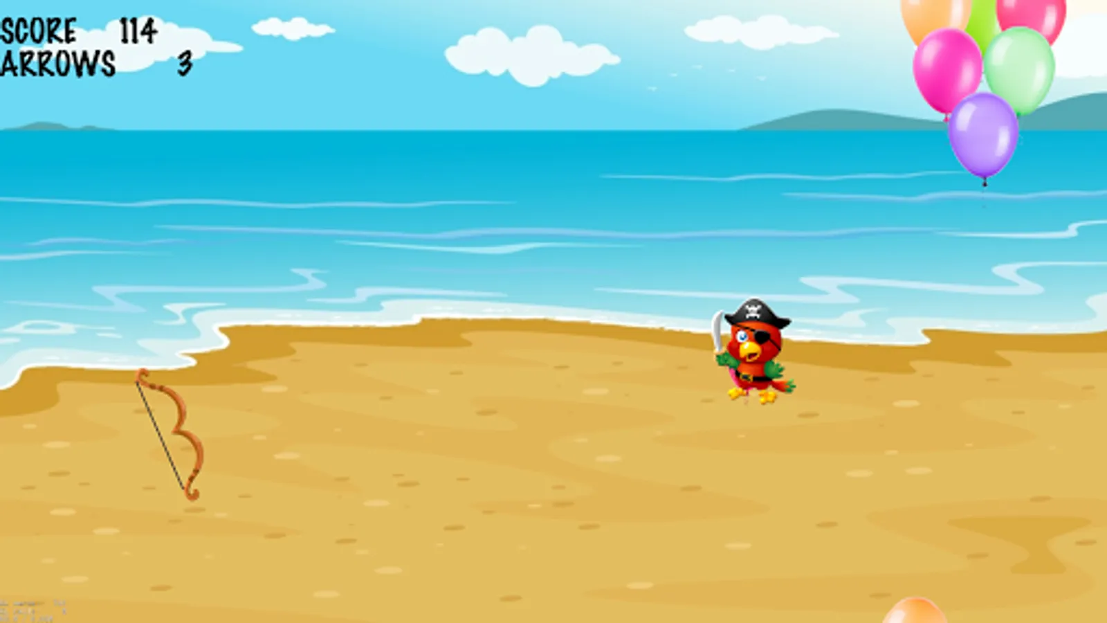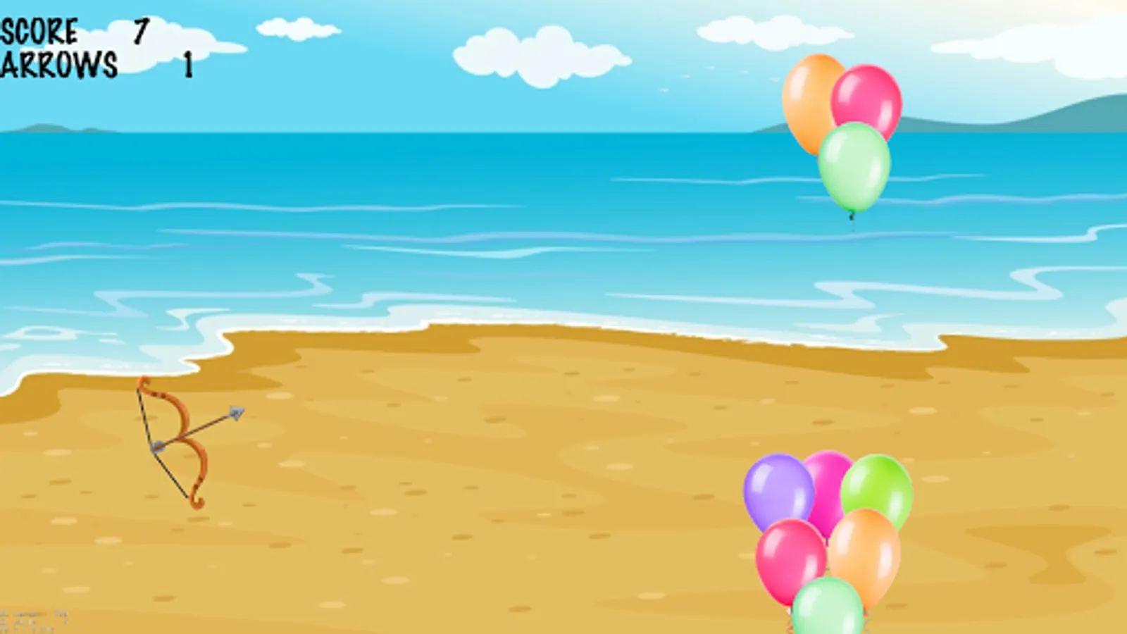 In this balloon game, you get 5 arrows to shoot the balloons, if the target is missed your game arrows count decreased by one
