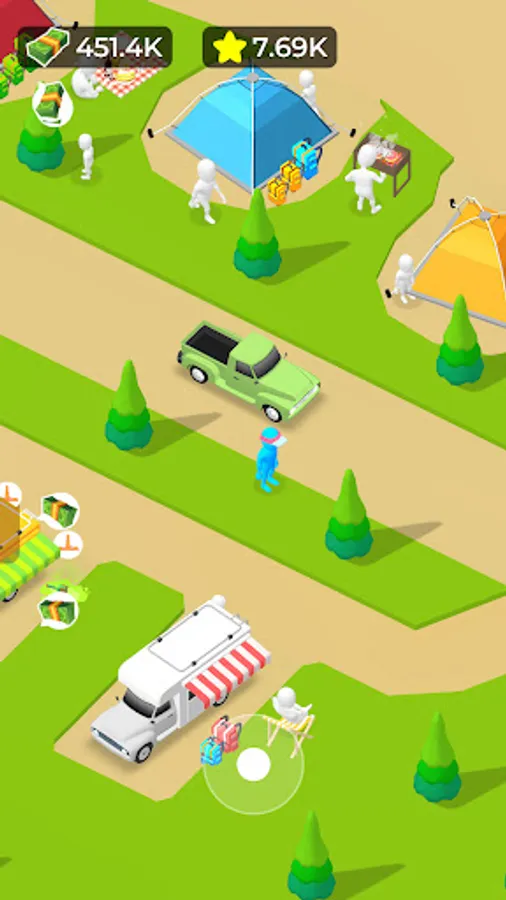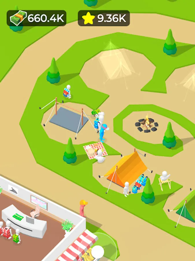 You have a camping company. Use a bus to transport the guests to the camping site, then welcome them, distribute equipment to them, and take them to the designated venue. Continue to meet their small needs and improve their satisfaction. They will give you a generous remuneration. Use these income to continuously expand your camping base. Until becoming camping tycoon.
