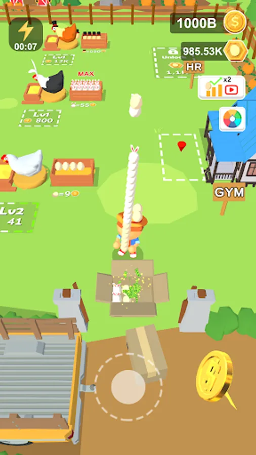 You have a small egg farm. You need to buy chickens, let them go down, then carry out the egg to the truck, sell them to get income. You can continue to upgrade the quality of the chicken and make the eggs they produce more valuable. When you have accumulated enough money, you can buy new chickens to produce non-necessarily eggs. You can also hire workers to help you handle these things.