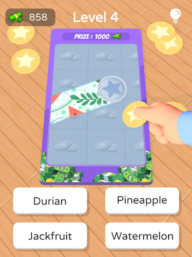 This is an analog scraping game. You have to do very simple, scrape it with your fingers, then guess the pattern. It should be noted that the more you have, the less the amount gets.