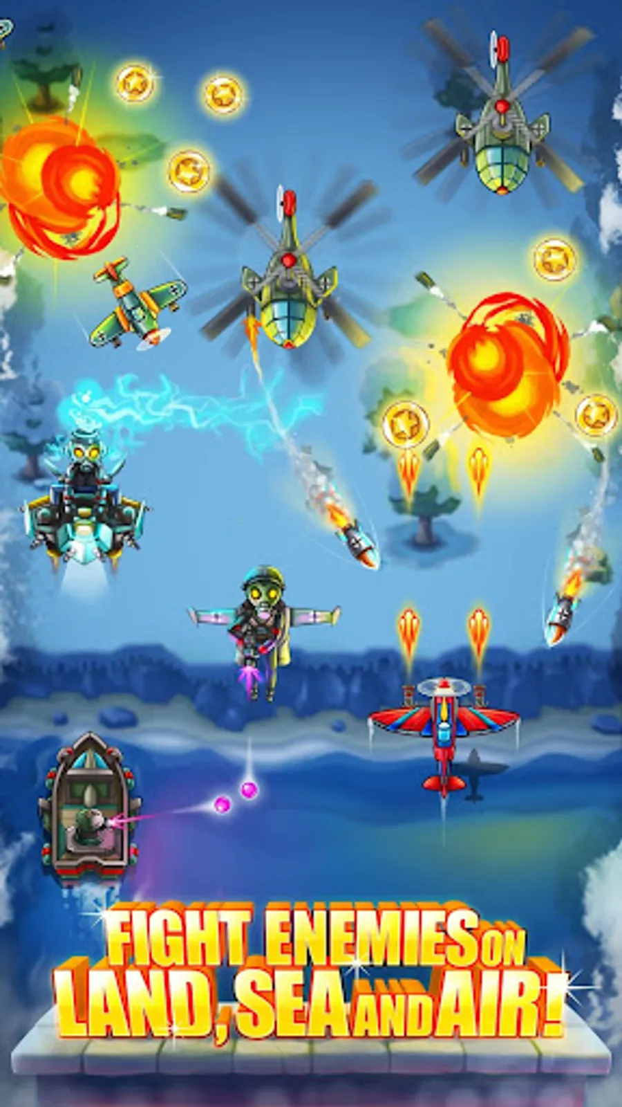 ** Modernized old school retro arcade game – enjoy classic WWII air combat game with cutting edge graphics and realistic sound effects! Most realistic air attack shooting game is in front of you: fire missiles, drop bombs, release hellfire from the gunner seat! As a commander of war, it is your mission to win the gunship battle and be the best airplane shooter! In “World War 2 airplane games”, your battlefield is the sky, and your life mission is shooting and dodging missiles, bombs, laser beans and enemy airships!