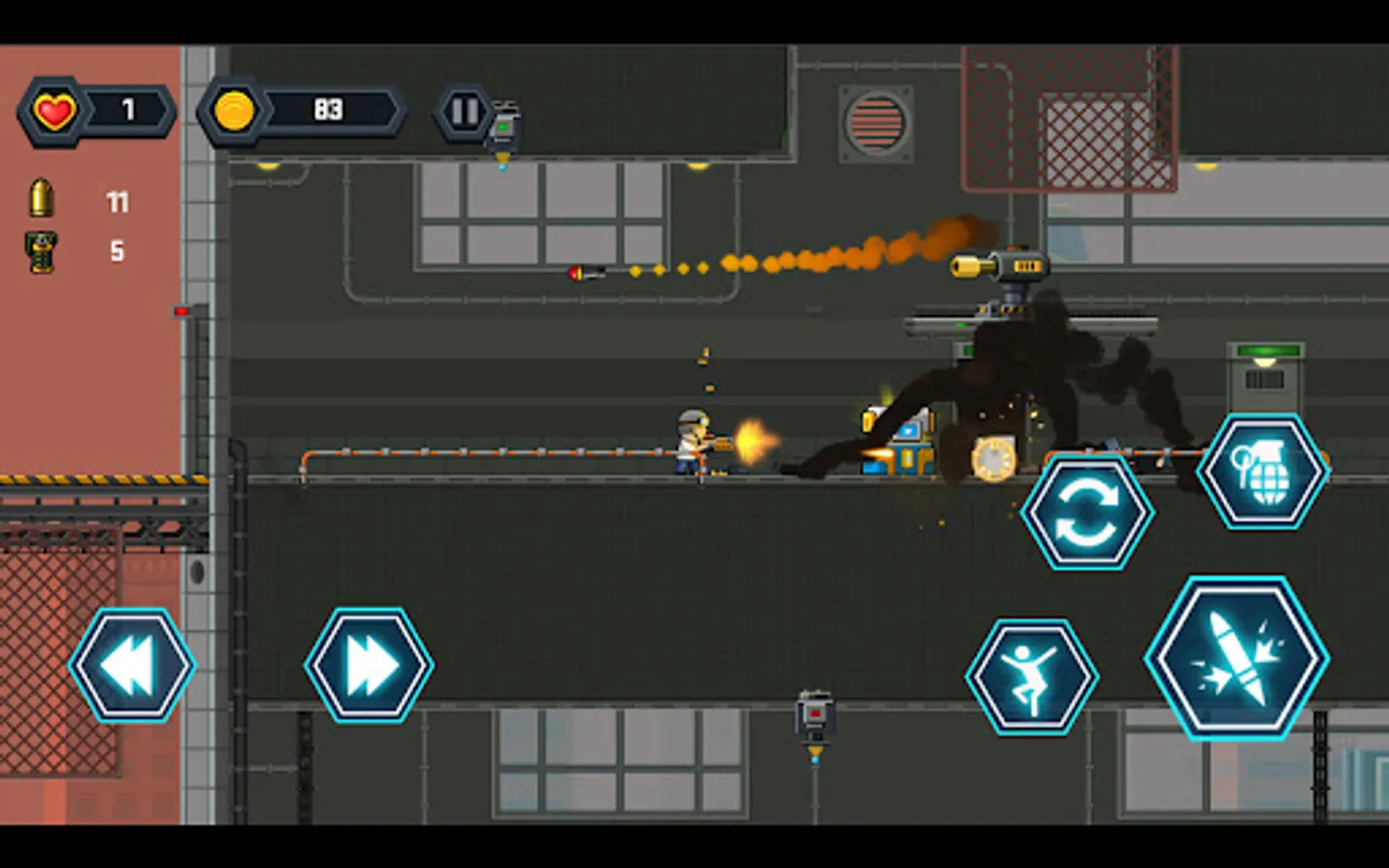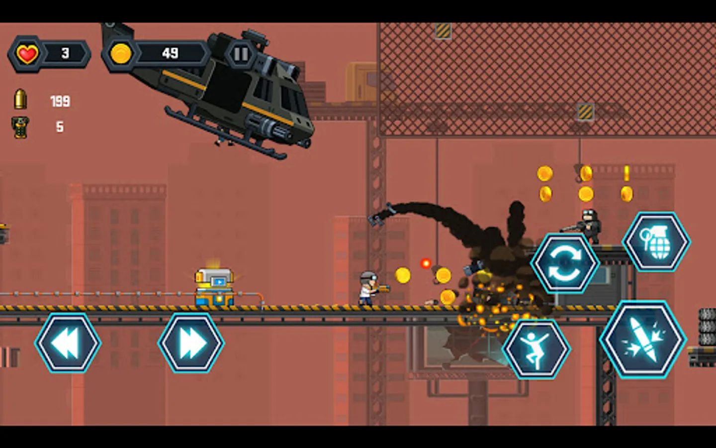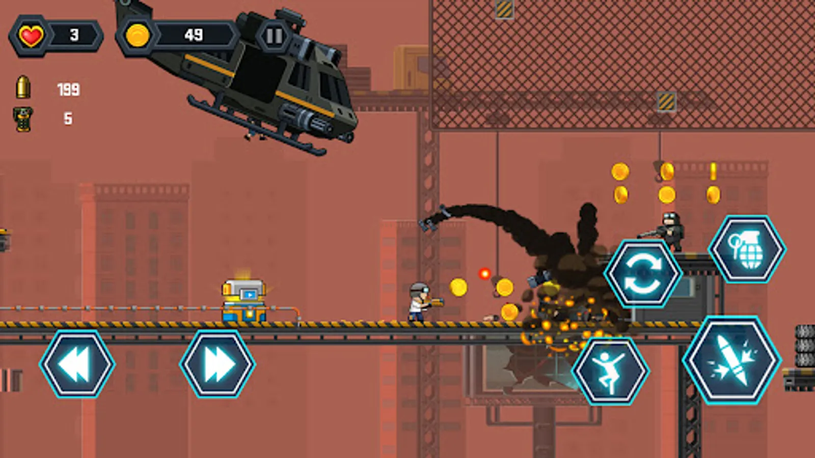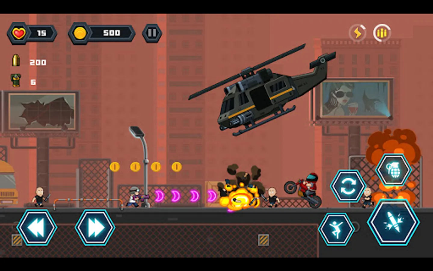 Run all the way, jumping, destroy enemies, and break a way out! Find salvation in this cruel wasteland city.