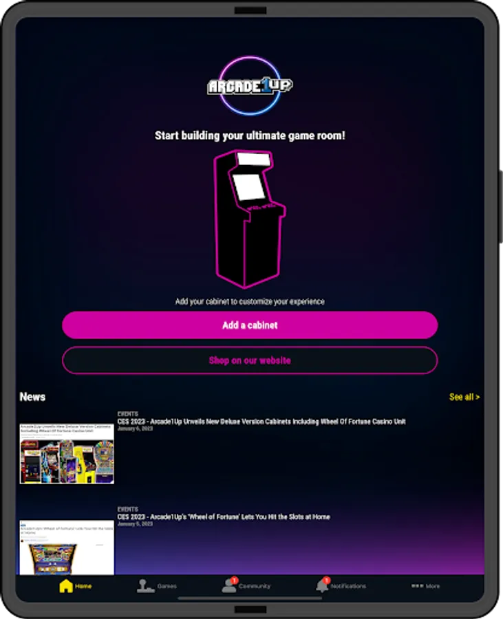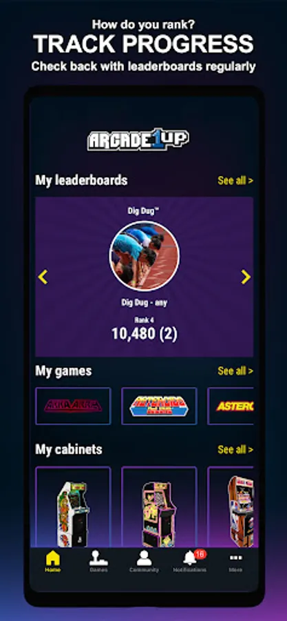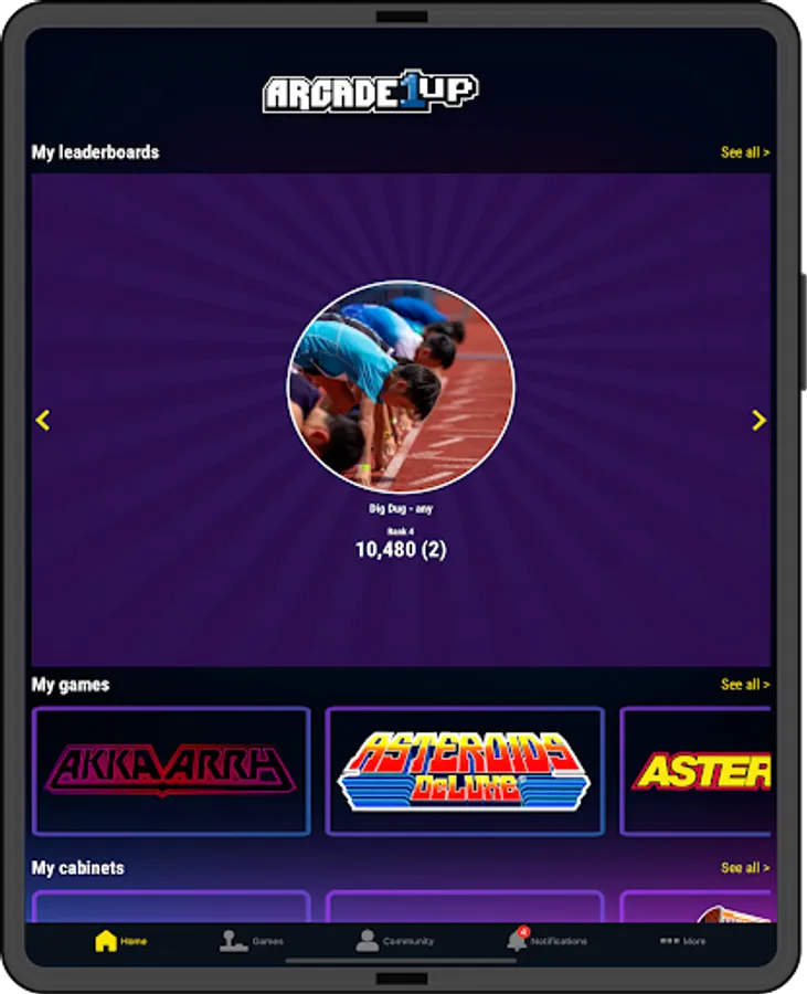 The all new Arcade1Up companion app is designed with you, the fan, in mind! Get the most out of your Arcade1Up 4 ft. machine: track online leaderboards, connect with new friends for online play, register for an extended warranty and discover the latest news - all from the palm of your hand.