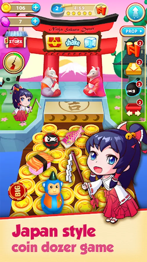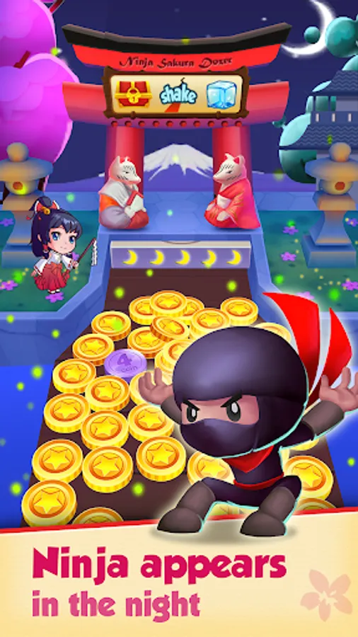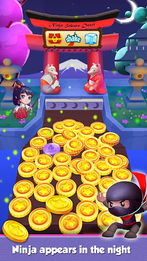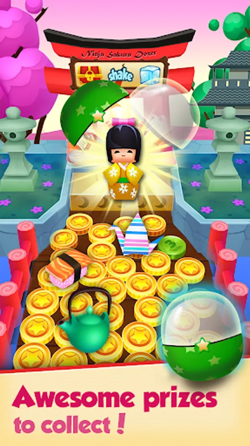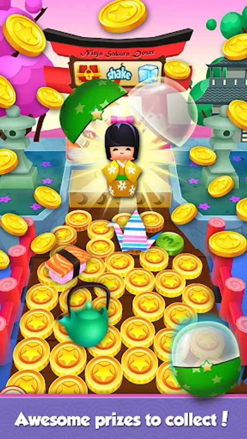 Coin Mania: Ninja Dozer is a traditional arcade game with new style - came to Tokyo! Brand new collections, impressive 3D graphics, slot machine with JACKPOT bonus!