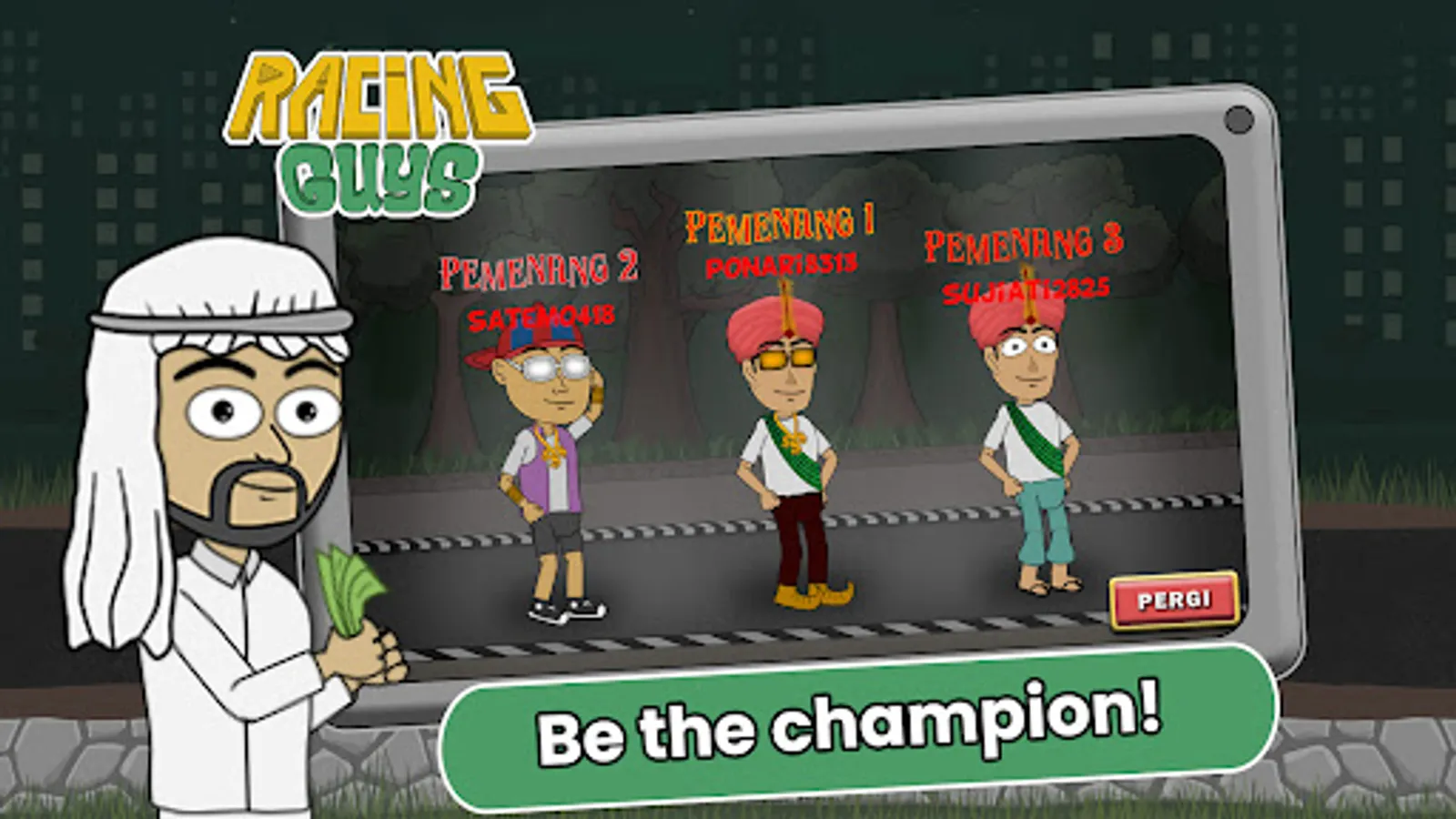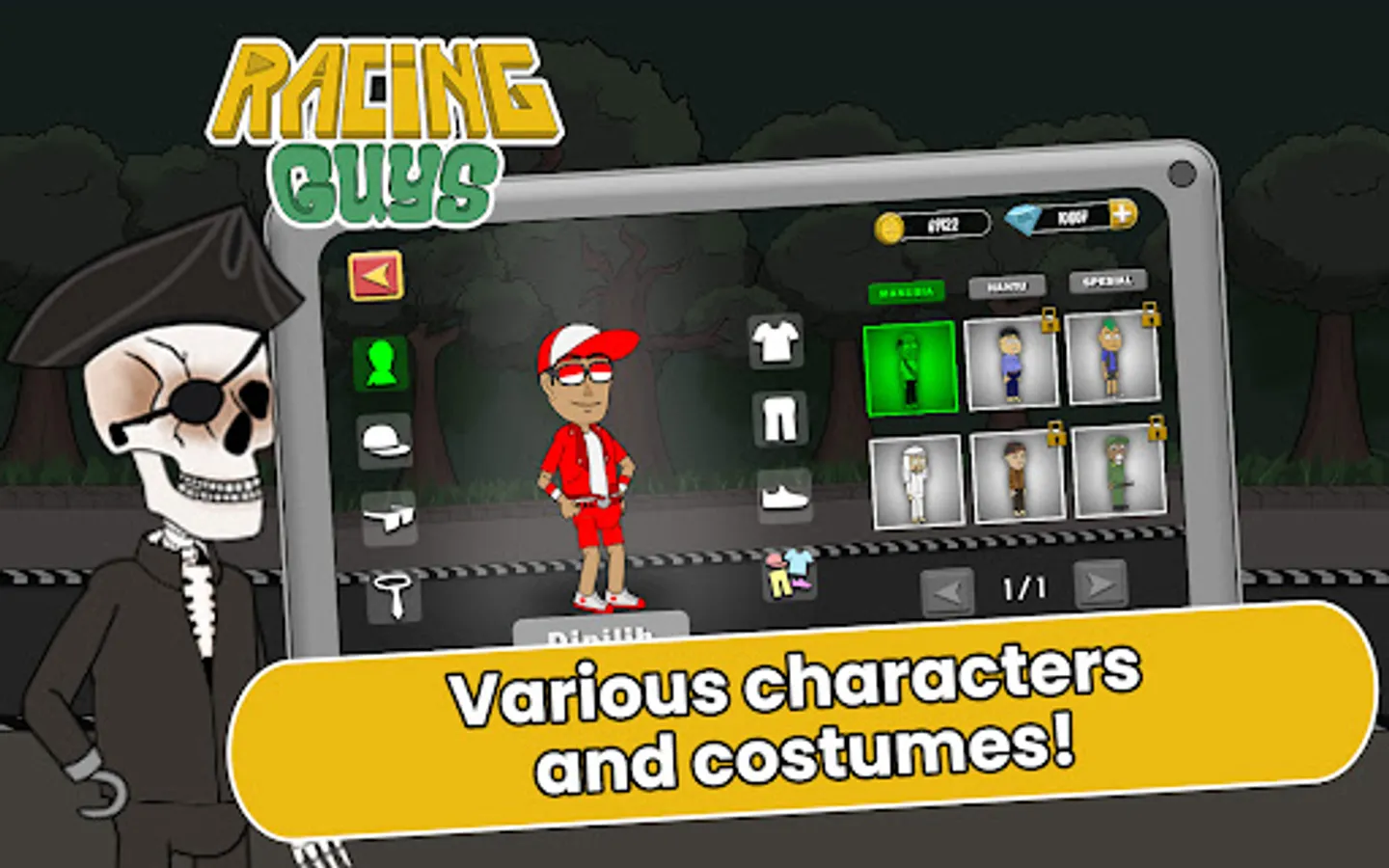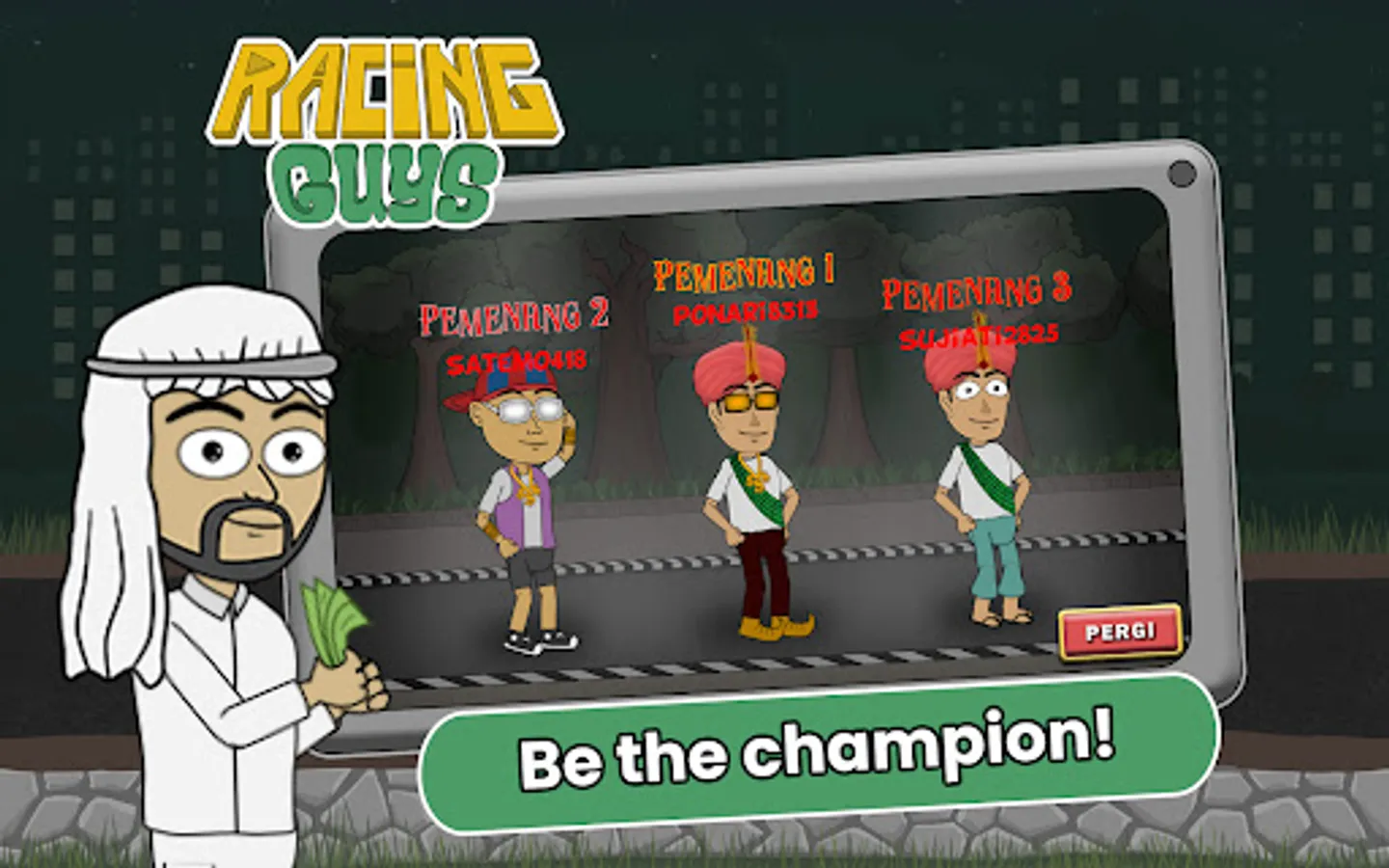 There are diverse characters available, such as Citizens, Security, Thugs, Arab Sultan, Pocong Ghost, Pirates, Vampires, Dracula, and many other netizen characters in Racing Guys!