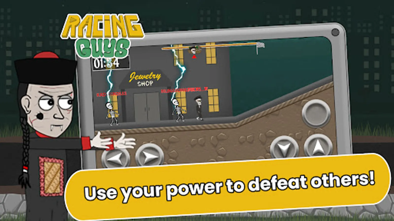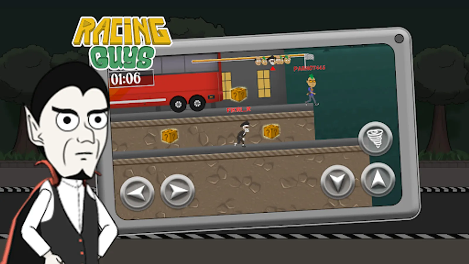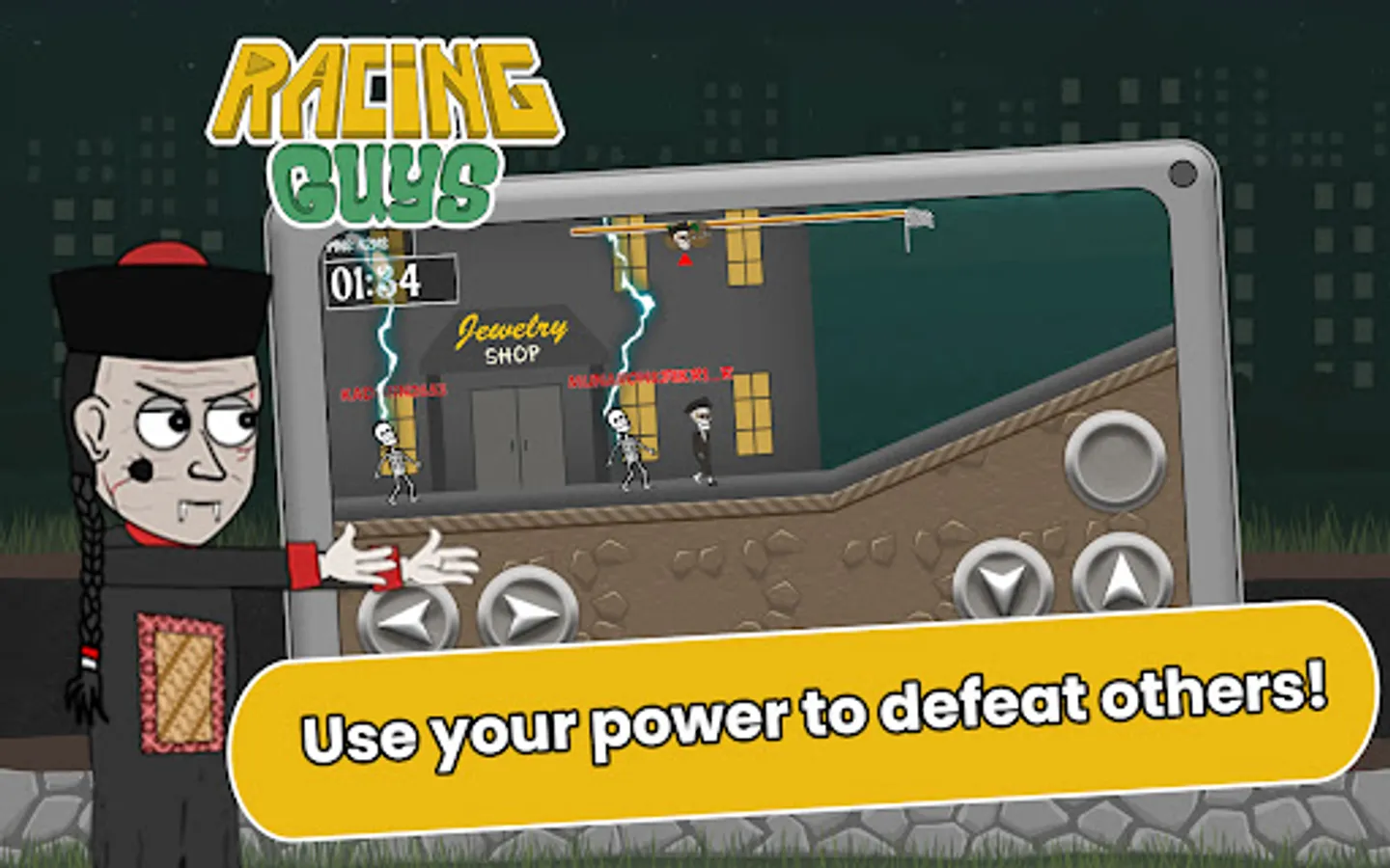 There are diverse characters available, such as Citizens, Security, Thugs, Arab Sultan, Pocong Ghost, Pirates, Vampires, Dracula, and many other netizen characters in Racing Guys!