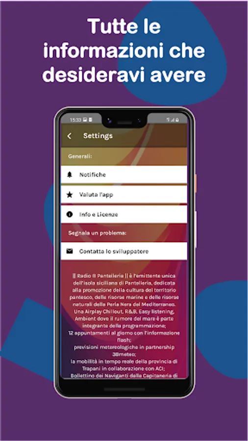 || Radio ® Pantelleria || is the sole broadcaster of the Sicilian island of Pantelleria, dedicated to the promotion of the culture of the Pantelleria area, the marine resources and the natural resources of the Black Pearl of the Mediterranean.