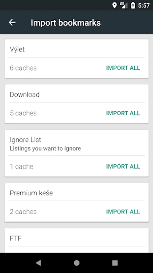 • Searching nearest functionality find only traditional, event and CITO geocaches (Importing specific geocache from URL or from manually entered GC code is not limited).
