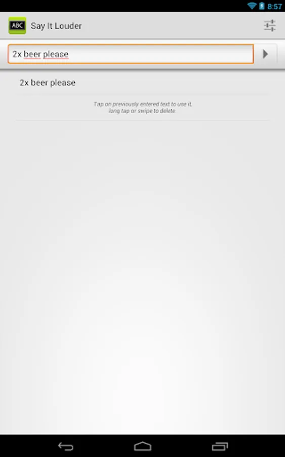 Are you in a noisy bar or a pub and do you have problems to order a drink? Or do you need to say a message to the other side of the table? So just for you is this application.