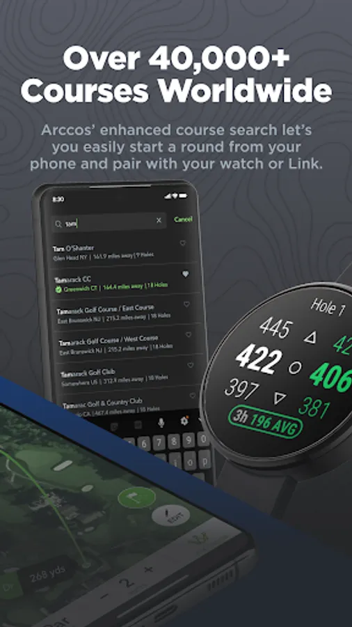 The pioneer of big data and Artificial Intelligence for golf, Arccos Golf LLC is revolutionizing the golfing experience. Its automatic shot-tracking platform delivers unparalleled insights that help players maximize their potential. Players may track their shots using their phone, Arccos Link wearable, or Apple Watch. Use your Wear OS device to view yardages, score, and other information during your round.