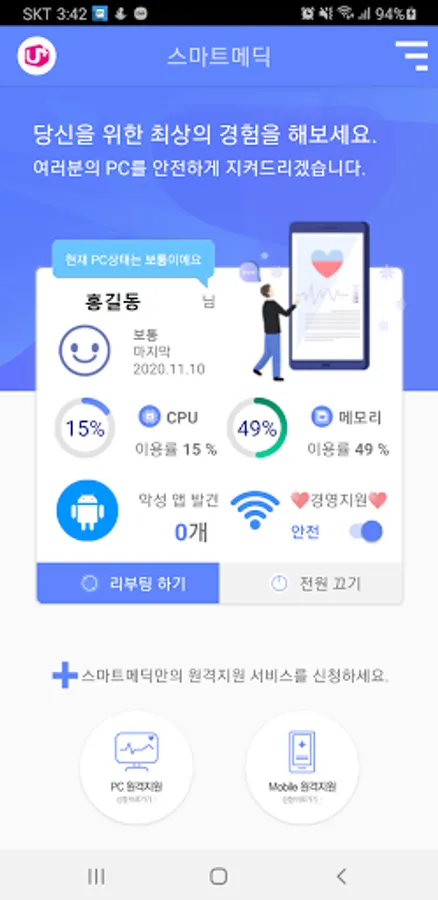 실시간PC원격주치의 서비스 가입자 분들을 위한 스마트메딕 앱이 출시되었습니다.