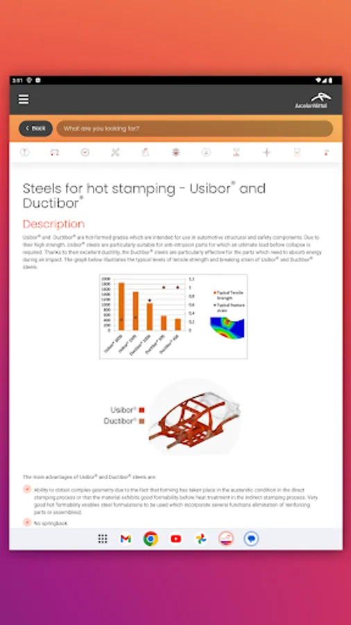 ArcelorMittal’s interactive Automotive app puts our database of steels and coatings at your fingertips. It’s the ideal app for carmakers, Tier-1 suppliers, engineers, automotive designers, researchers and students.