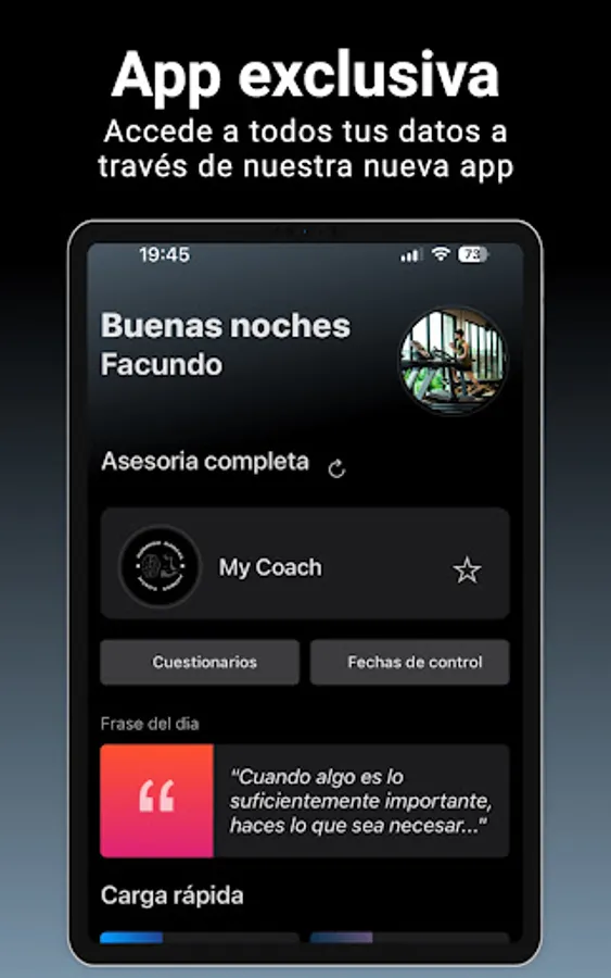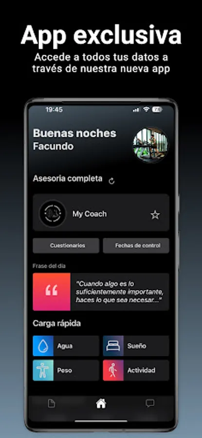 - Record your progress: Upload your training and nutrition reports and videos for detailed monitoring.