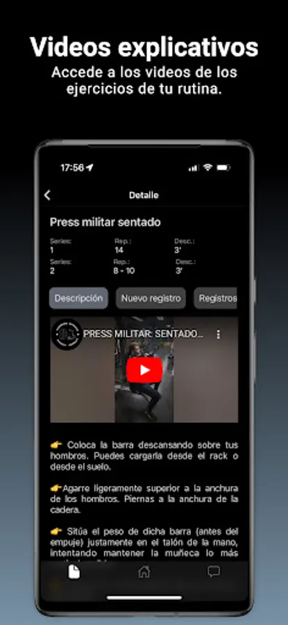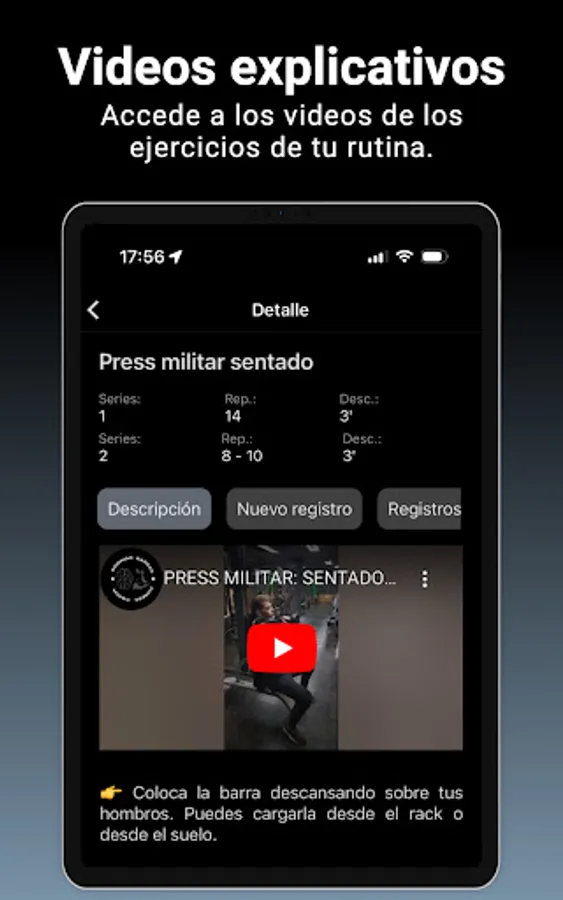 - Video library: Learn the correct execution of each exercise in your training schedule.