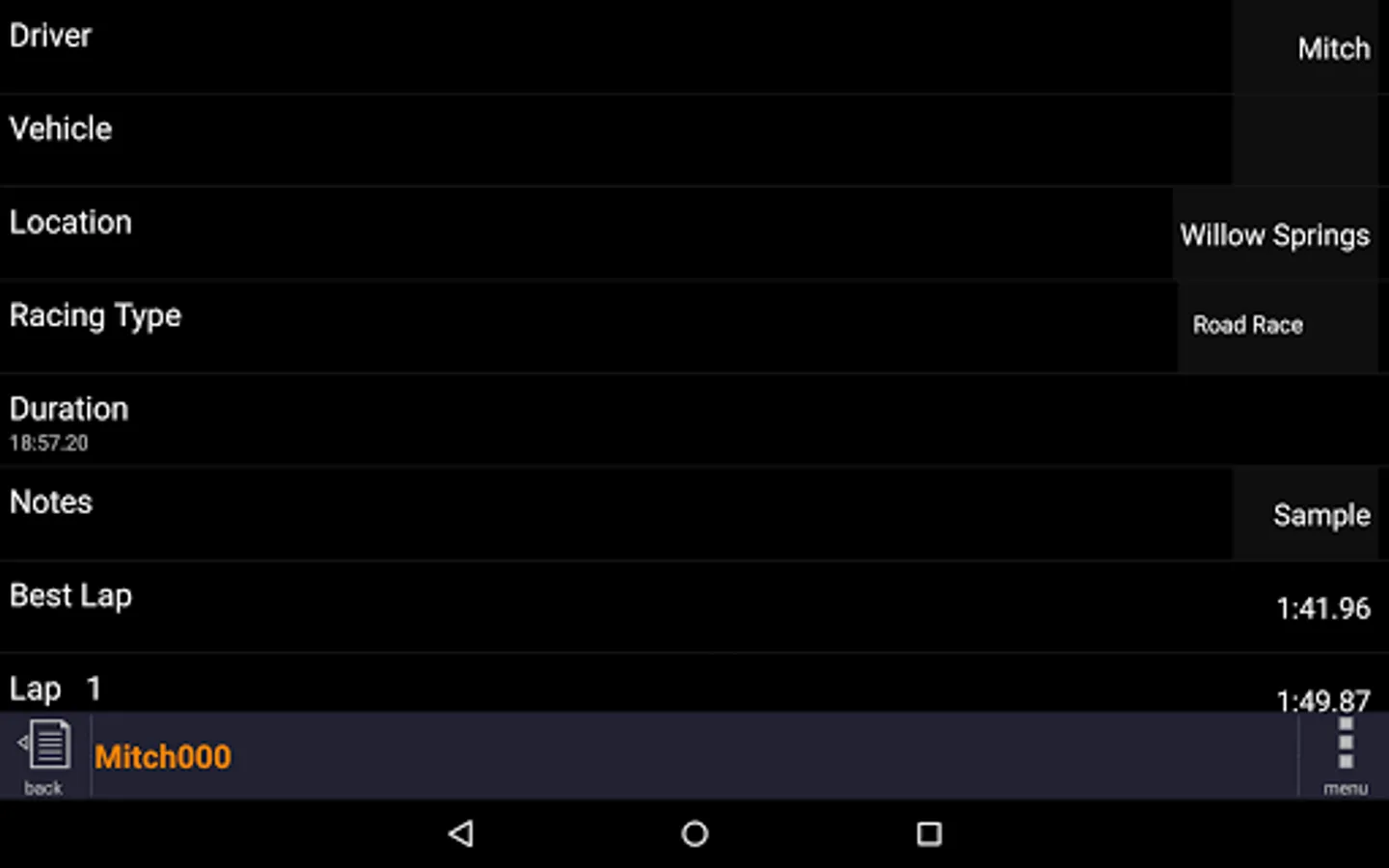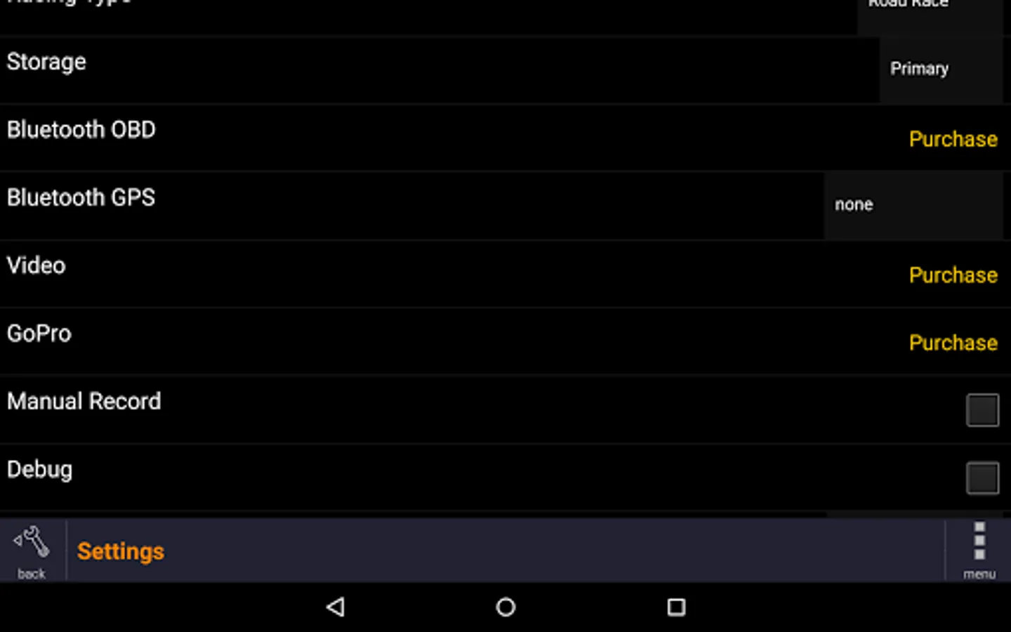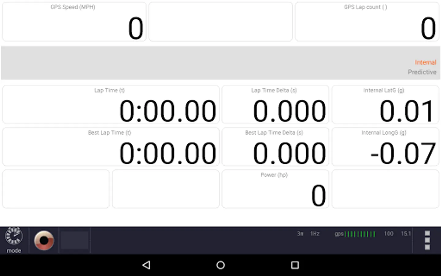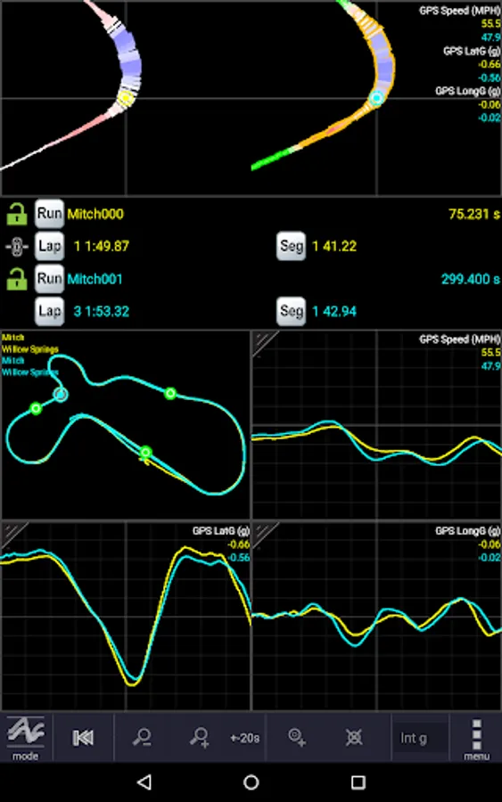 • Real-time display of speed, g forces, and lap times