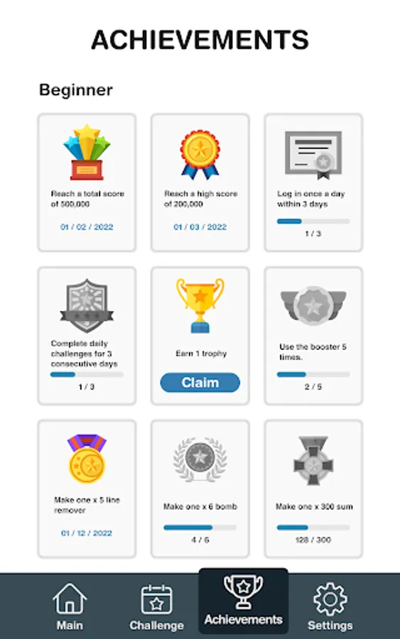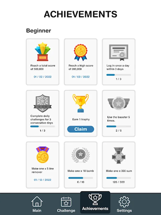 • Complete daily challenges and collect trophies.
