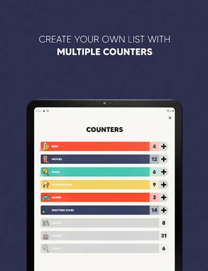 Create a counter with your friends (games, habits…) and choose a period of time (hours, days, months…) or set a goal. When someone reaches the goal or the countdown comes to an end, you will find out your FINAL COUNT.