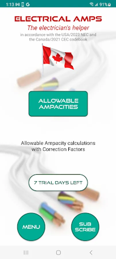 The Electrical Amps is designed to help electrical tradespeople with their ampacity calculations with the right correction factors. All calculations are done in accordance with the 2023 USA National Electrical Code and the 2021 Canadian Electrical Code.