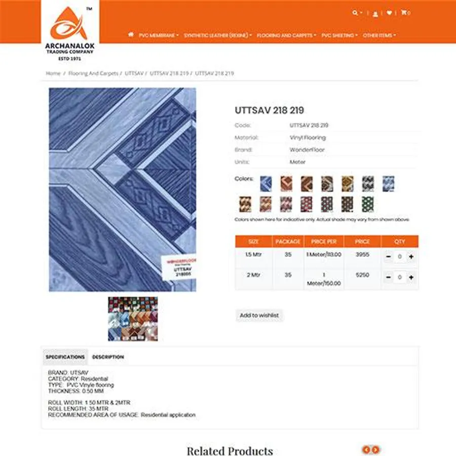 Archanalok Trading Co., was founded in 1971 and is located in Hyderabad City. We have 2 modernized production lines and a work force of 80 members. We produce over 6.5 Lakh meters of coated textile fabric per month and are one of the largest producers & distributors of Textile Coated Fabric, PVC Film, PVC Flooring, Floor Carpet, Decorative Wallpaper and many more to satisfy your requirements.