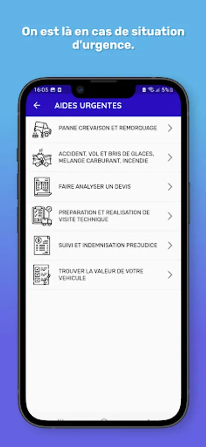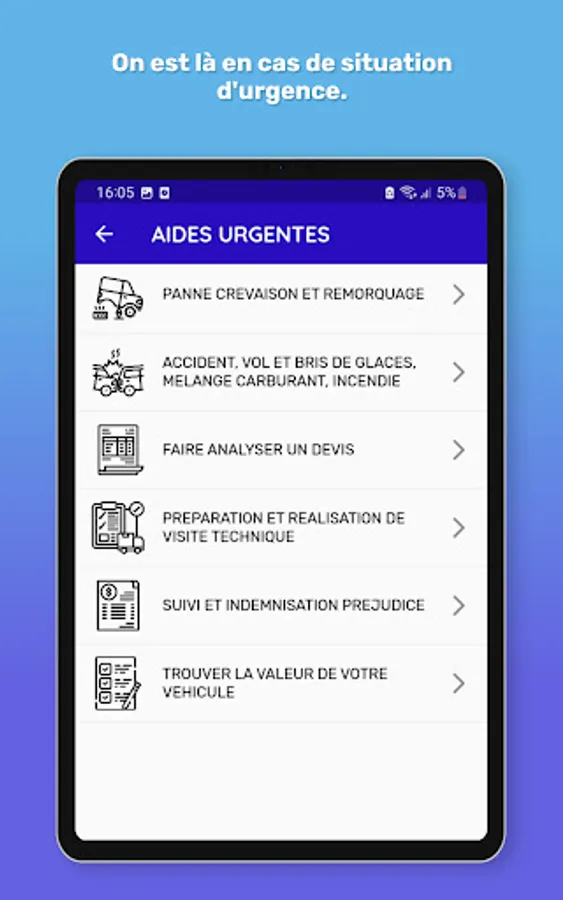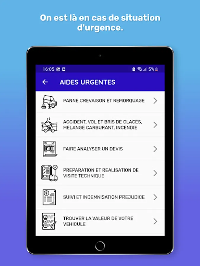 d'urgence, telles que l'assistance routière et la localisation des mécaniciens de