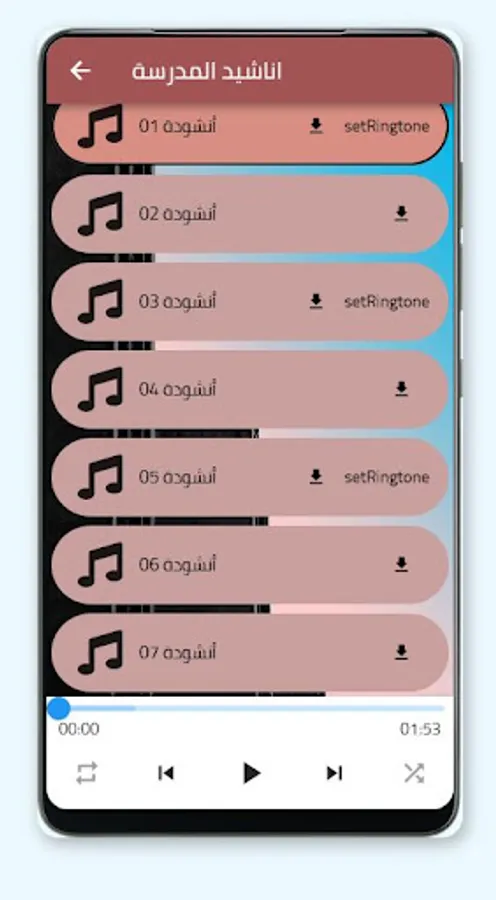 The school chants application contains the back to school chant, my school chant, and a lot of songs to learn Arabic alphabets and numbers, as well as school love songs and songs for learning letters and numbers.