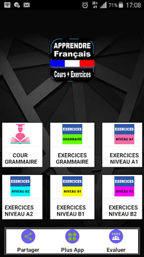 Learn French easily with our free app for beginners. This book, in pocket format, will help you improve your pronunciation and master grammar and conjugation. You will also find exercises with answers to put your knowledge into practice. This application, available in offline mode, is ideal for learning French in a fun and effective way. Download it now on Play Store and improve your French!