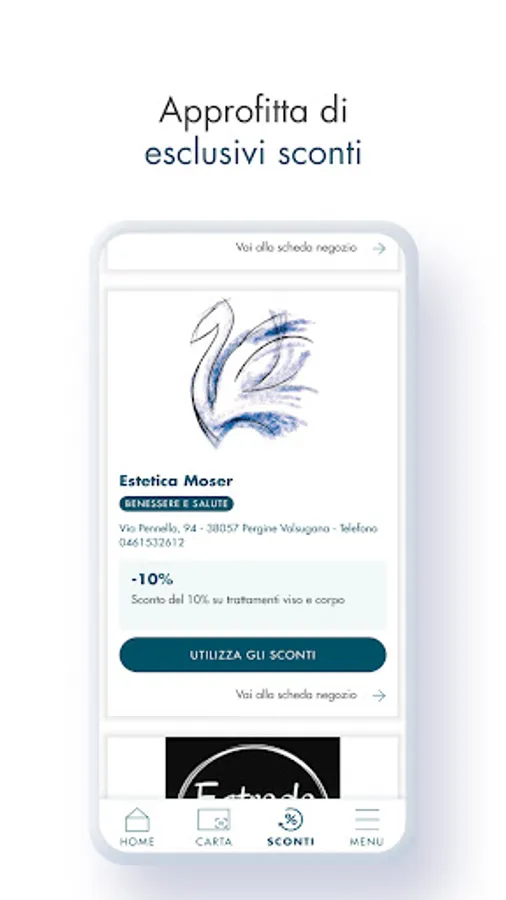 3. The "Discounts" function is perhaps the most important of the app, because it will allow you to give greater strength to the project: "Zerni el nos" which aims to create a virtuous circuit, a real driving force for the economy of Alta Valsugana, through savings formulas intended for all the members of the Cassa Rurale that encourage the purchase of local goods and services. The application will allow you to take advantage of discounts at a number of affiliated businesses, which will be able to recognize Members via their Smartphone.