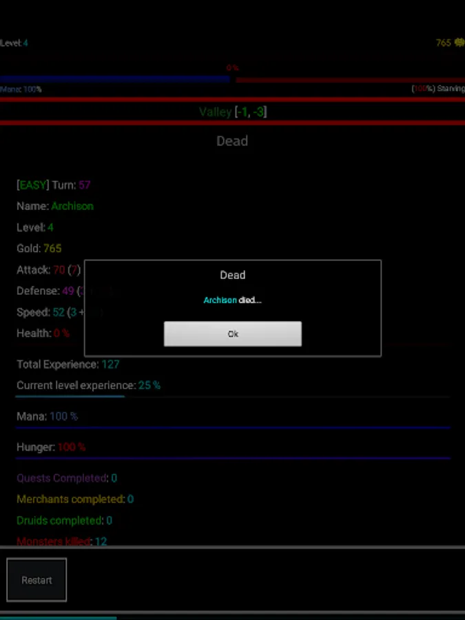 RAR is a free text based Roguelike rpg game in which you are the hero of your own story with randomly generated challenges and adventures. As in traditional rogue like games, you can choose the permadeath mode, or now you can also deactivate permadeath and earn another chance continue your adventure after death. If you have deactivated permadeath, make sure to deposit your extra cash in the bank in order not to lose it when you die!