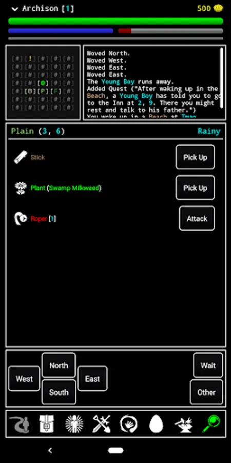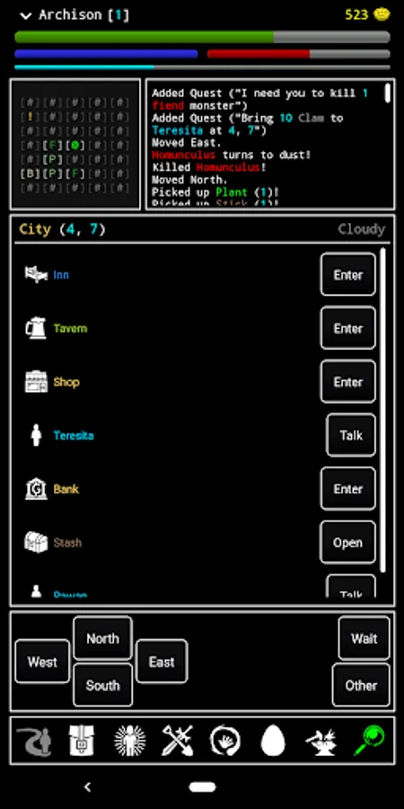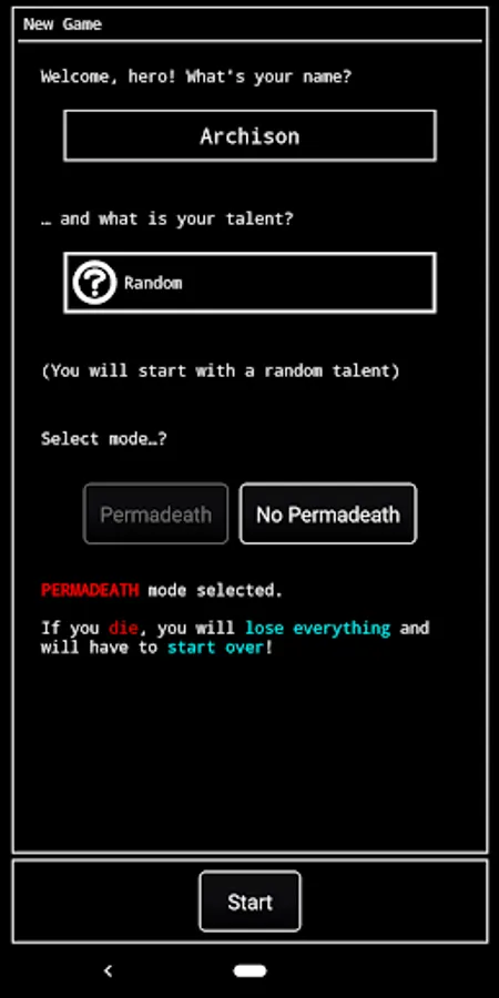 A solo indie-dev aims to bring an old-school style to modern day Android devices. This is accomplished with an easy to understand interface, a few iconic buttons, and several information screens. Players are empowered to navigate a proceedurally generated world full of danger and treasure.