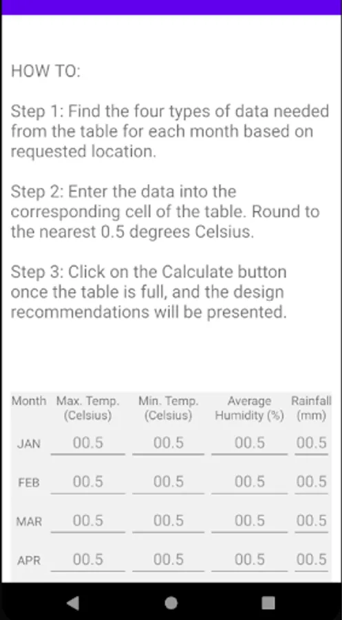 An app that works as a pre-design tool for climate-based architecture. It uses a known algorithm to take climate data and turn it into pre-design recommendations. These recommendations can be used to start or compare architectural projects in the early stages of design.