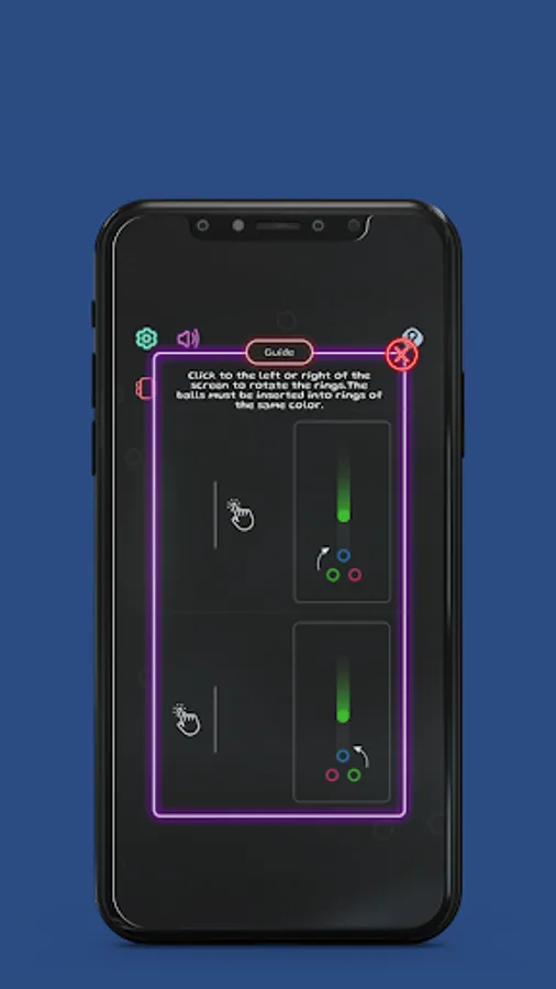 Tap to get started, tap on either side of your screen to rotate the color gizmo and arrange it to let the correct color fall on it in limited time!