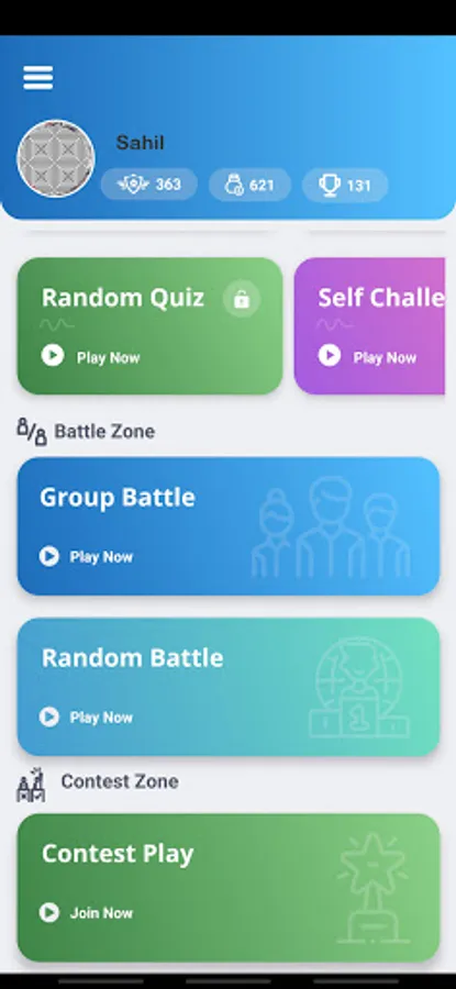 The Quiz Battle mode (Group and Random) is specially designed to have competitions among your friends, colleagues and fraternity.