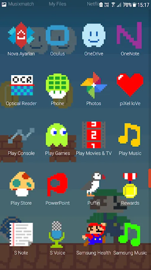 This is just an icon pack (not a game). It consists of pure, crisp and flat 17x17 pixel icons to give your phone a clean and retro look.